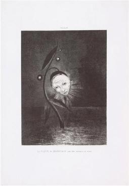 A Structuralist would likely see a plant like image on a blank background, with leaves and some type of buds. On the buds, a mask or clown head appears to have bloomed. The head has human physical features, and looks like its face is painting white with a collar of some type around its neck. A Non-Structuralist would believe there was imagery and symbolism. The plant could represent life or living, and the people or lives that grow and then die, and the lives yet to come to the world. The clown or figures face may represent a person or group, perhaps one which is misunderstood or disliked, based on the look of sadness and despair visible in the face. There are many theories that could be said, however the main difference is that a Non-Structuralist would insist that there is symbolism and not just reality.