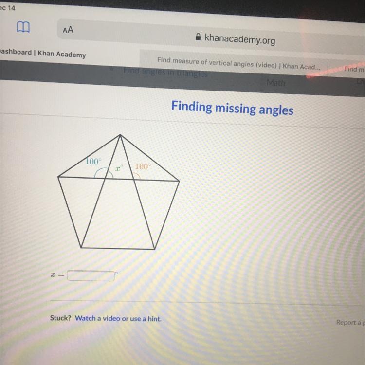 The answer is x=80 degrees