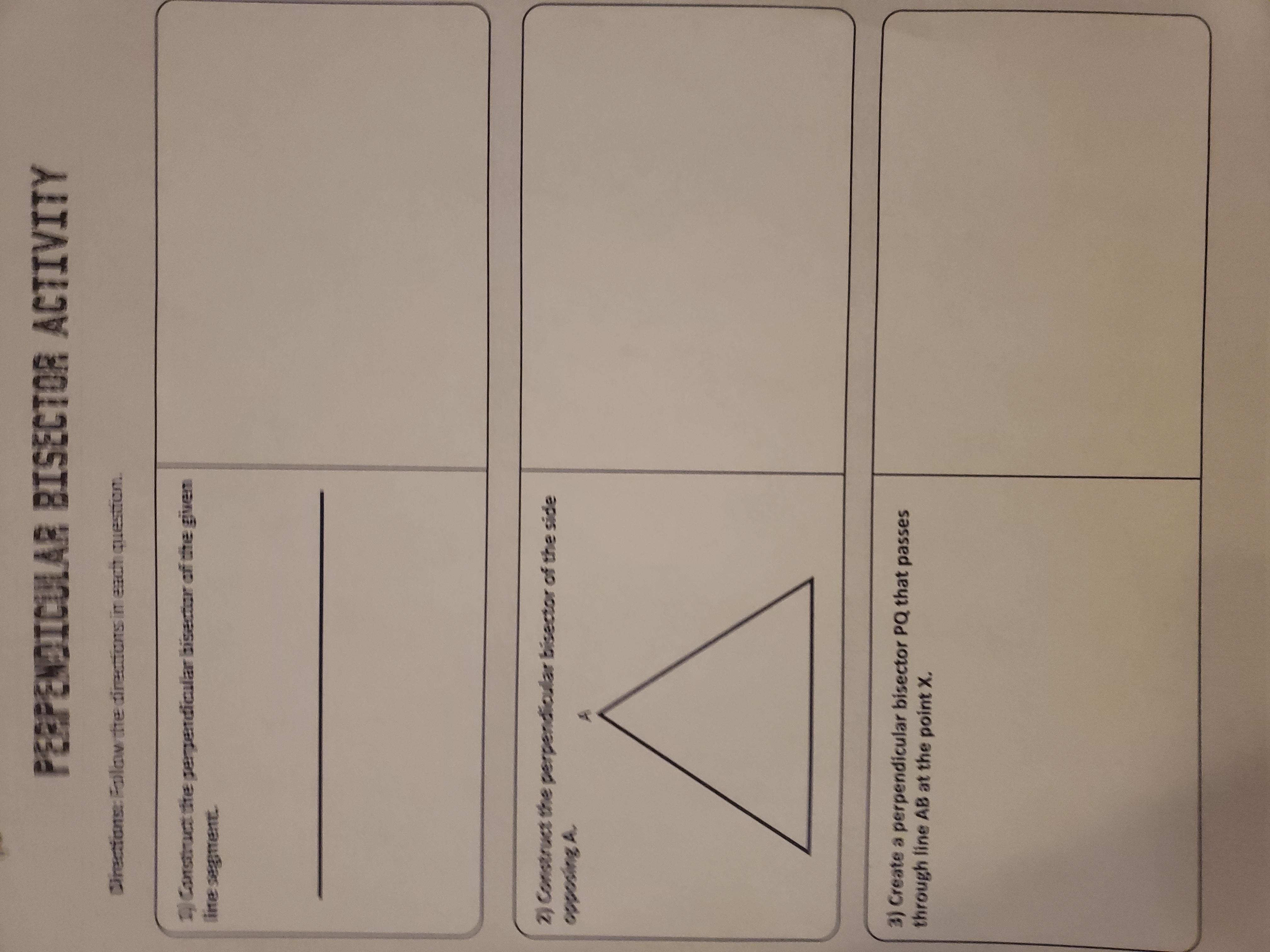 6. Draw line segment PQ. This is the perpendicular bisector of EG. (For part 3, it will go through point X.)