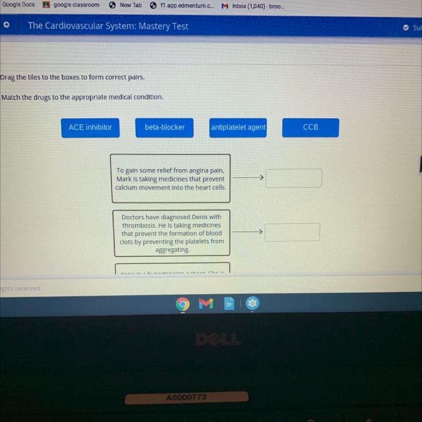 antiplatelet agent- Doctors have diagnosed Denis with