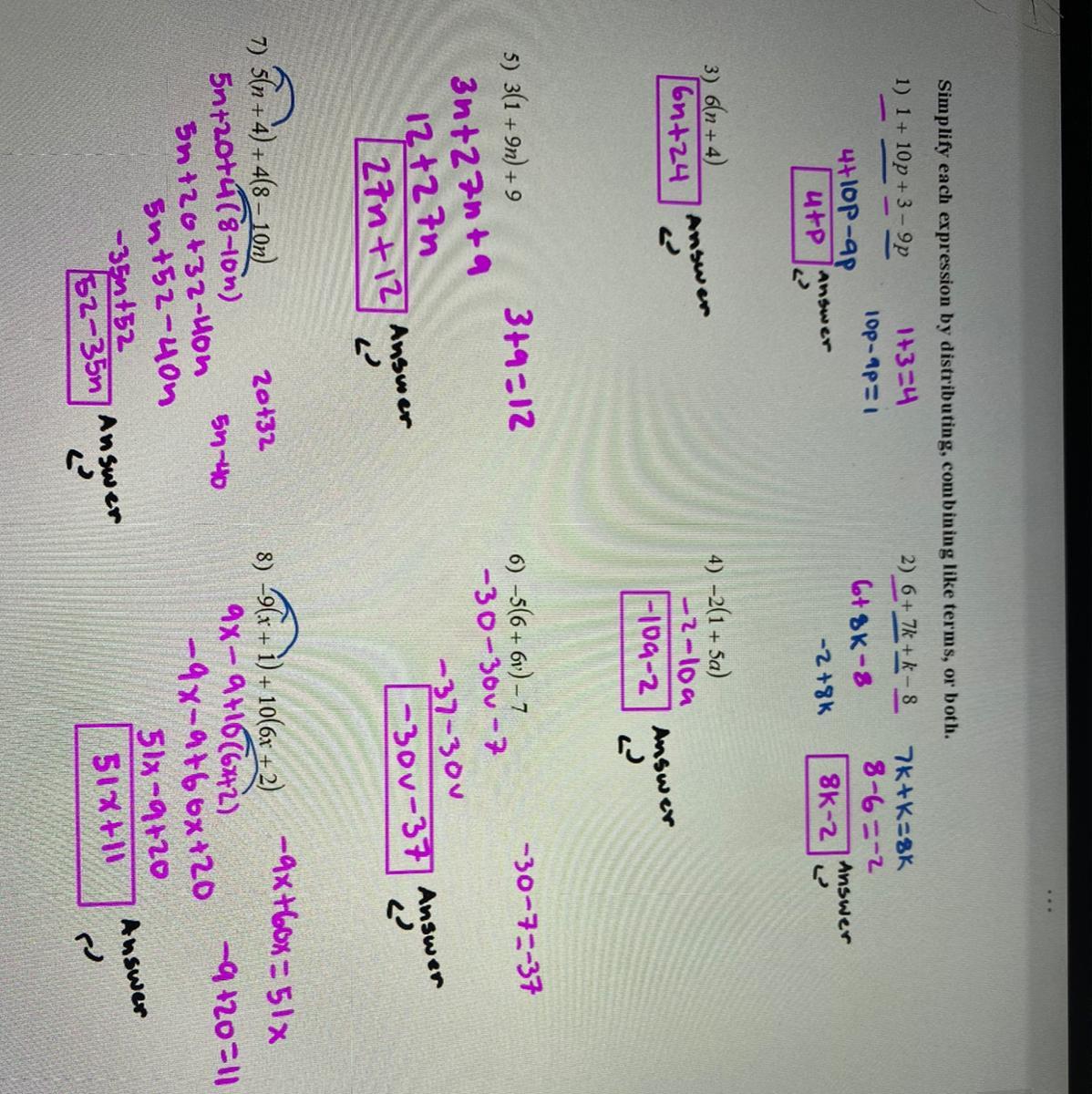on number eight in the work on the 9x it should say -9x but you fixed it later so the answer is right but the work at that point isnt