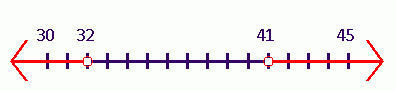x < 32 or x > 41