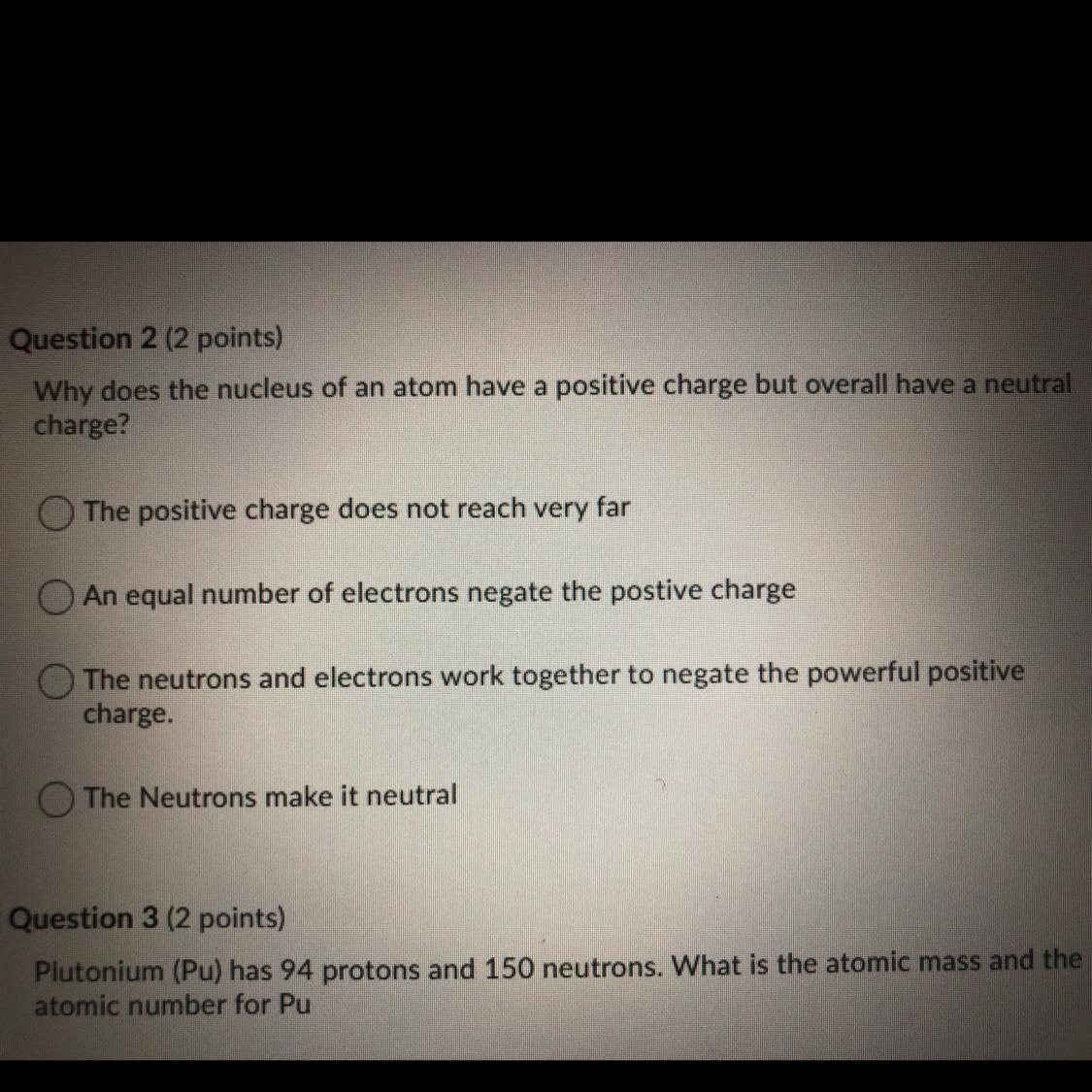 each element has its own unique number of protons (atomic number) but a different number of neutrons can be shown in example number 3.