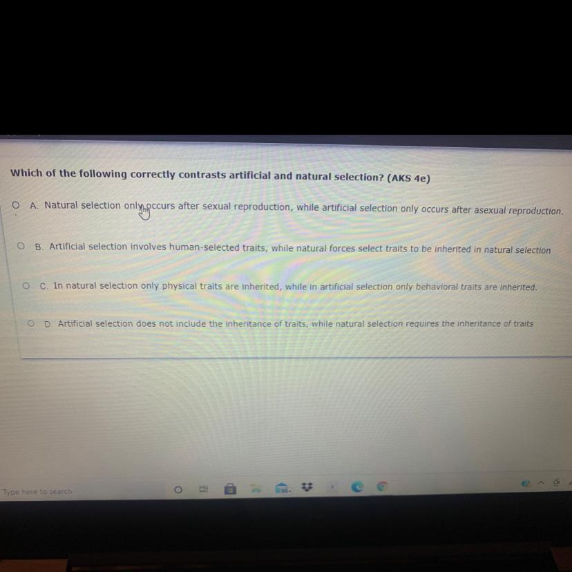 I believe it’s A but I’m not too sure