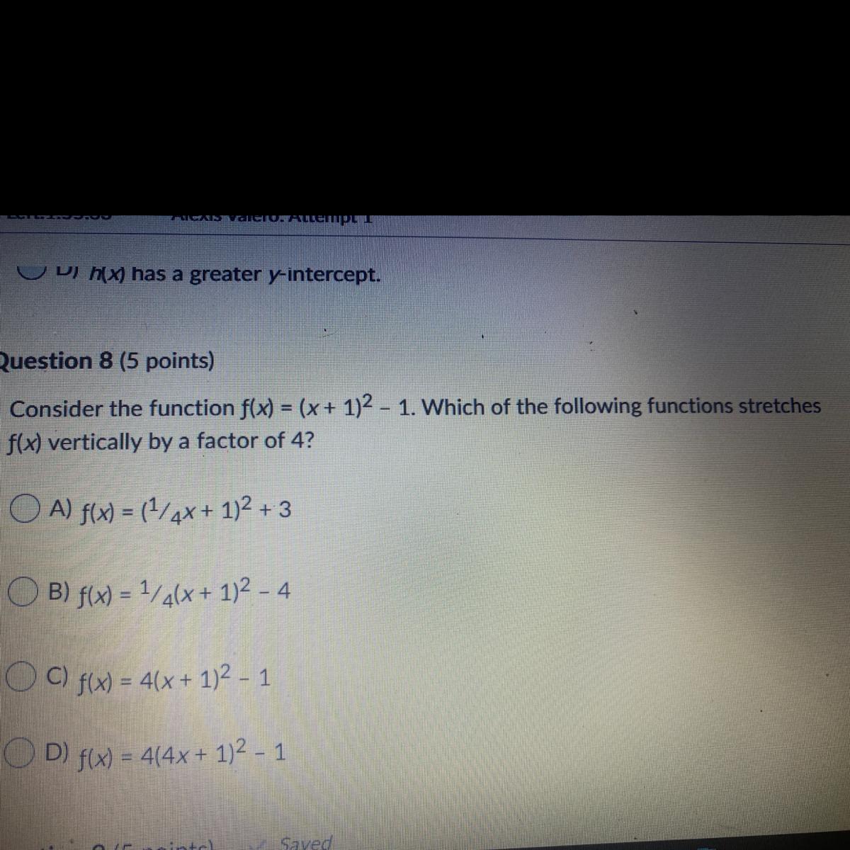 A coefficient of 4 would have to be added in front of (x+1)^2 in order to vertically stretch the function by a factor of 4.