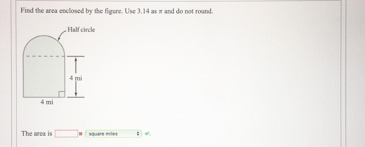 This is for the entire circle, half of that would be 3.14