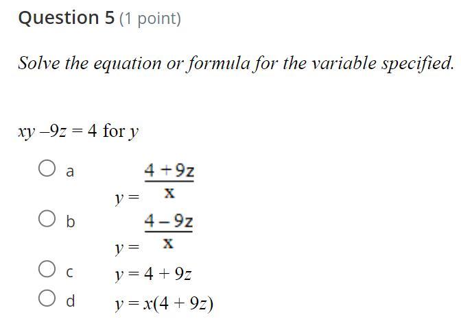 x = 4y-1 + 9y-1z