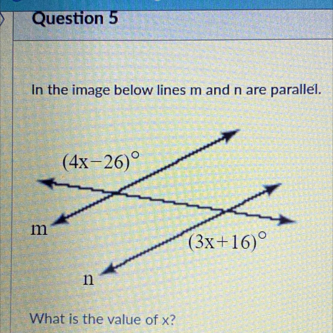 Solving for variable 'x'.
