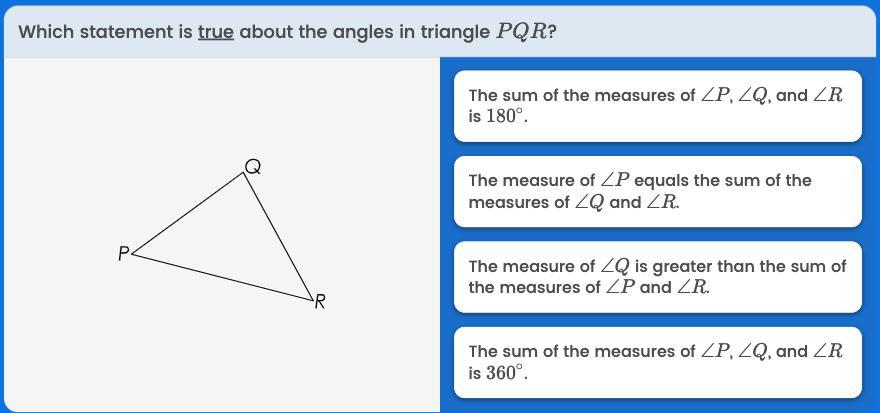 Which statement is true about the angles in triangle P Q R ( THIS FOR A GRADE & DUE TODAY!)