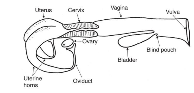 Explanation: The secondary sex organs are a series of tubes that receive semen, transport sperm to the egg so it can be fertilized, nourish the fertilized egg (embryo), and allow the calf to be birthed. These organs include the vagina, cervix, uterus, uterine horns, and oviducts (also called Fallopian tubes), which each have a funnel-shaped opening called the infundibulum. Figure 1 presents a diagram of the complete reproductive tract anatomy. Hope that helped❤️❤️