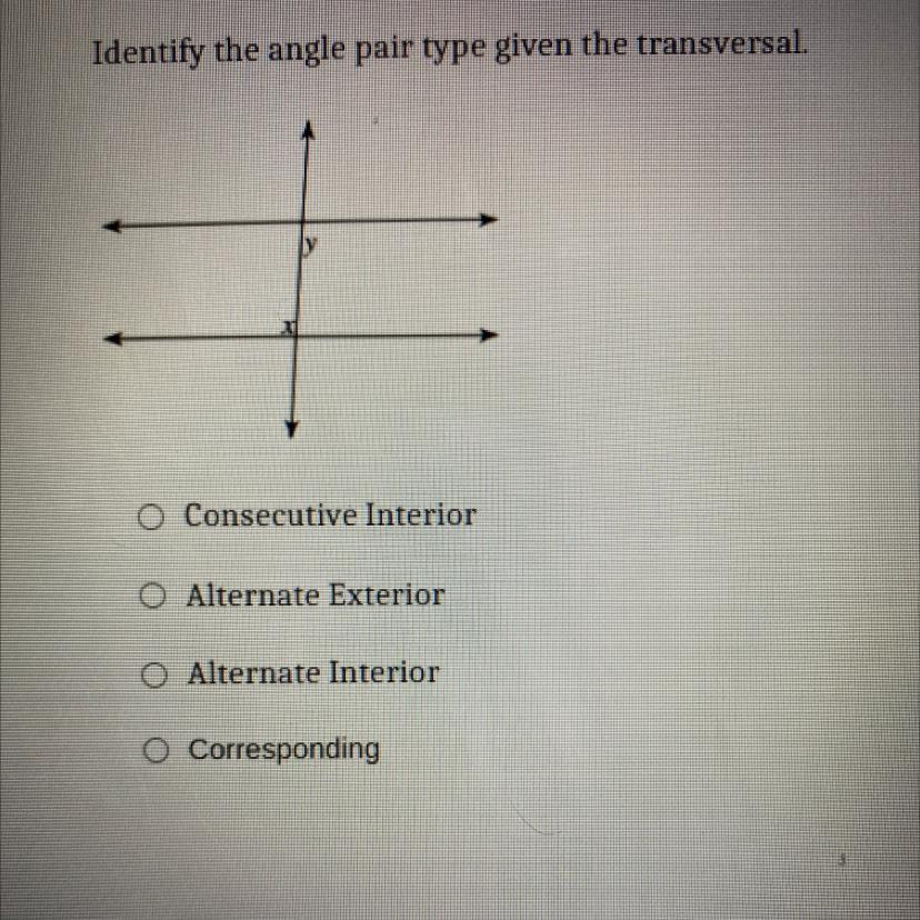 In our case, x and y are alternate interior angles.