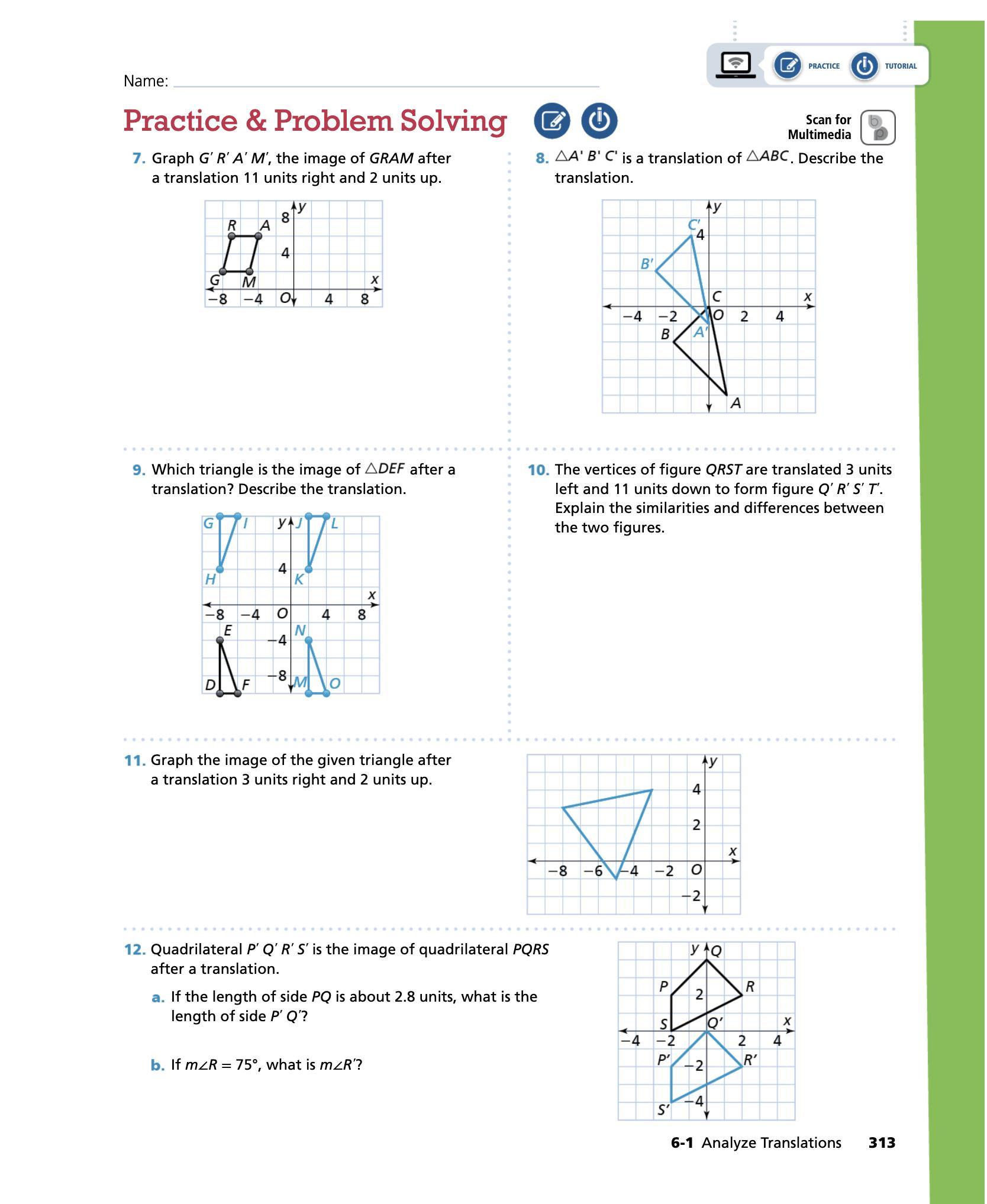 7. (3,4), 8. ΔA'B'C translates to ΔABC and it means Angles A, B, and C, 9. It goes from the bottom left, top left, top right, then bottom right. 10. Both figures have the same letters. The difference is that the second figure has apostrophes. 11. you move the angle to (-3,1). And I am sorry but I don't know what #12 is.
