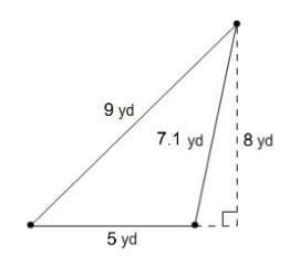 The side lengths are 9 yd, 5 yd, and 7.1 yd.