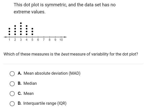 The mean is usually used when the dot plots, or histograms, are symmetrical and have no outliers.