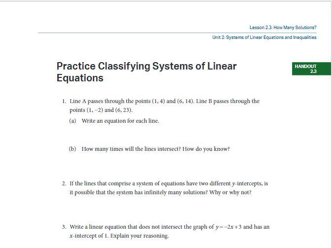 2. No, it the system has infinitely many solutions, then the lines would be on top of each other. But since there are only two solutions, then your answer would not be infinitely many solutions.