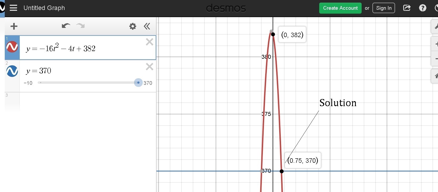 that means-------> For t=0.75 sec , d=370 ft