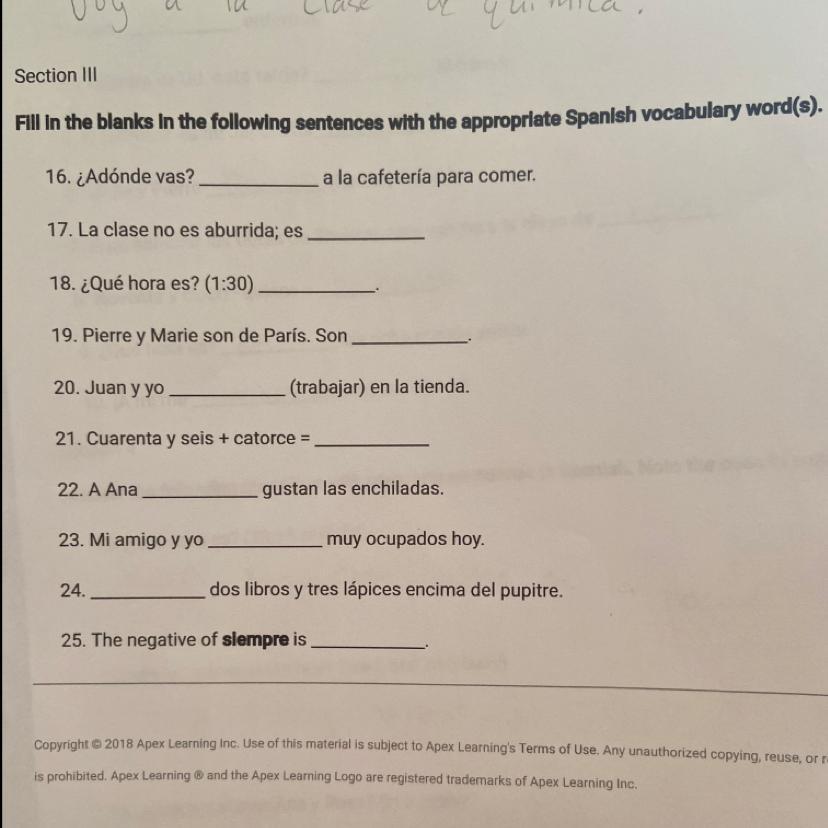 Completa la frase según la lectura. Complete the sentence according to the reading.