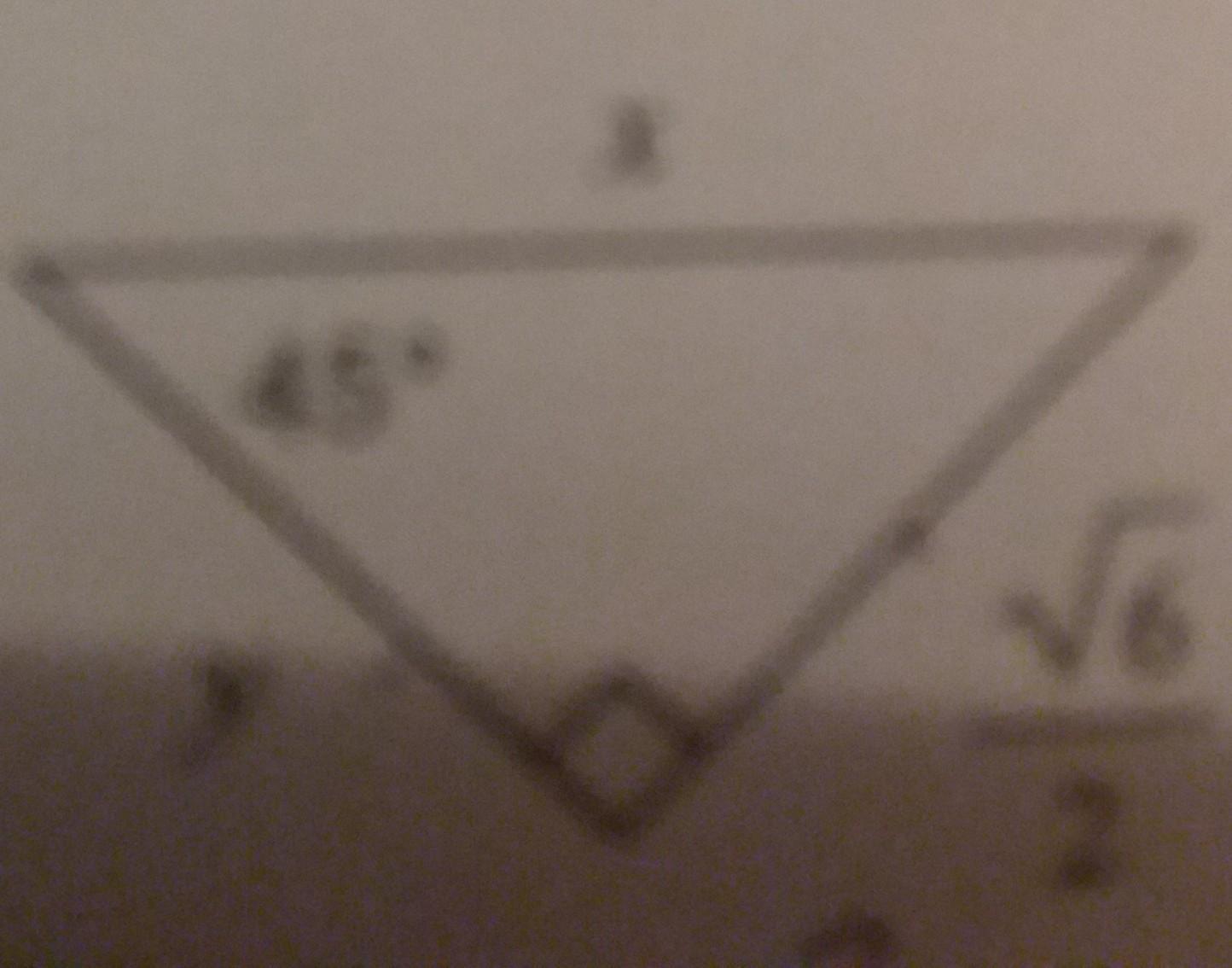 This is a 45-45-90 special right triangle, which means that the legs are congruent and the hypotenuse is the side length of a leg *√2. Therefore y=(√6)/2 and x = (√6)/2 * √2 = (√12)/2
