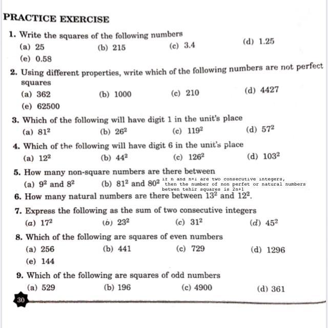Property 1: A number having 2, 3, 7 or 8 at unit’s place is never a perfect square. In other words, no square number ends in 2, 3, 7 or 8.