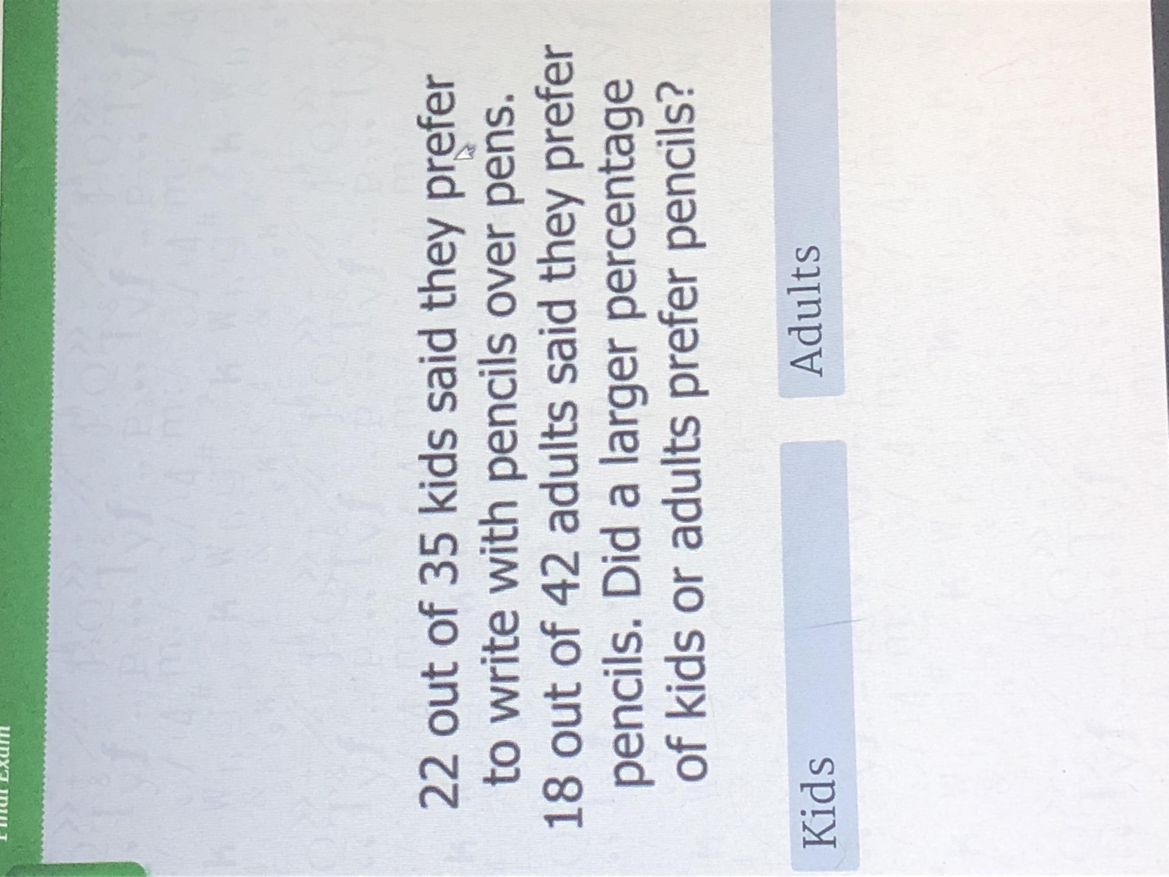 Because 62 percent of the kids preferred pencil when only 43 percent of the adults preferred pencils.