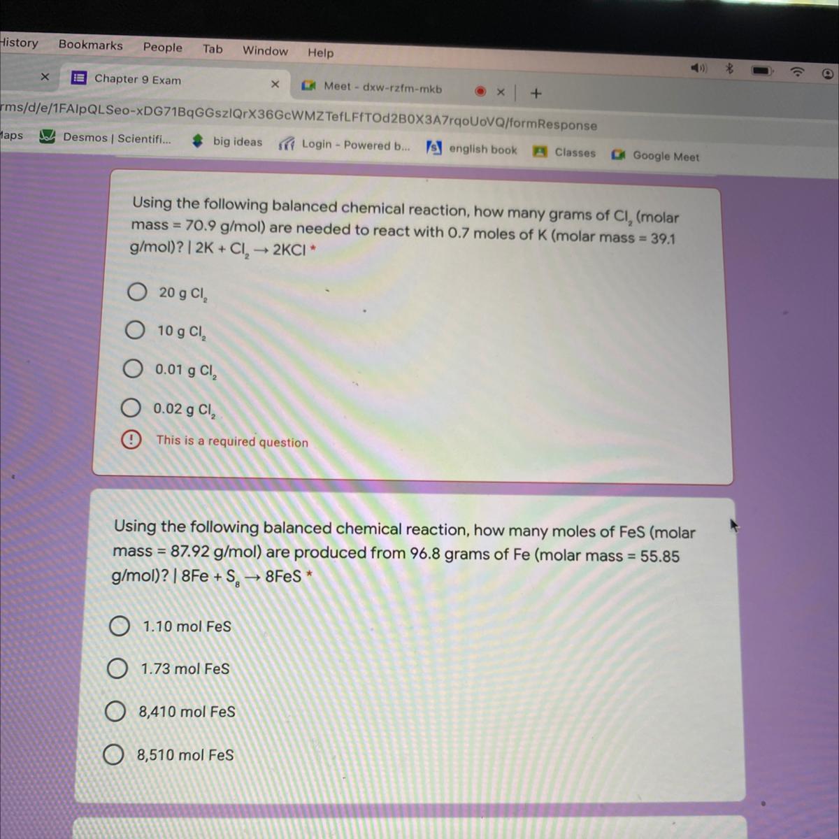 Mass = 0.227 mol × 2.01 g/mol