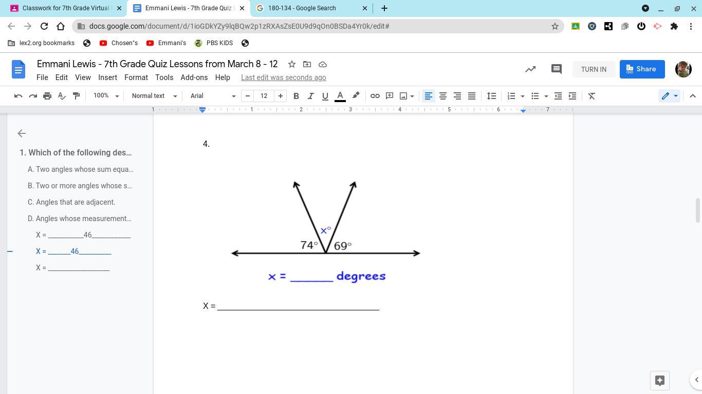 2X + 1 + 3X - 2 + 4X - 5 = 180