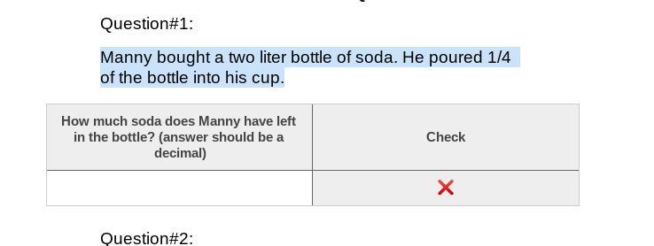1.5 L would be left after a quarter of 2L is taken away