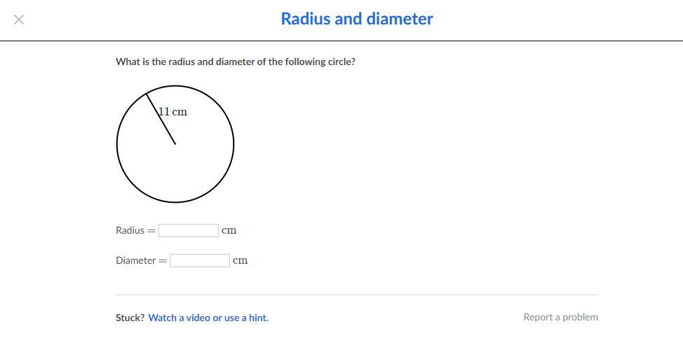 The radius of a circle is a line segment extending from the center of a circle or sphere to the circumference or bounding surface, while the diameter of a circle is a straight line passing from side to side through the center of a body or figure, commonly a circle or sphere. Since the diameter goes entirely across the circle while passing through the midpoint - or center - of a circle and the radius only goes from the edge to the midpoint, that means the diameter is twice as big as the radius. In this example, the radius is already given to you, which is 11 cm, based on the image. Using this, you can figure out the diameter of that circle would be or 22 cm. So the radius of the circle is 11 cm, while the diameter of the circle is 22 cm.