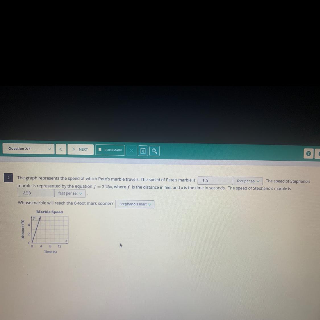 Pete marble goes 1.5 feet per sec