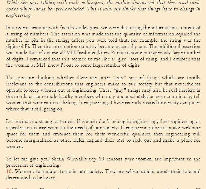 i) Can you think of other reasons why women are important to the profession of engineering?