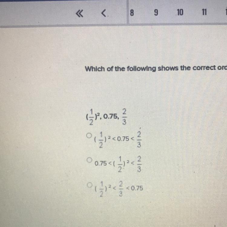The last one, (1/2)^2 < 2/3 < 0.75