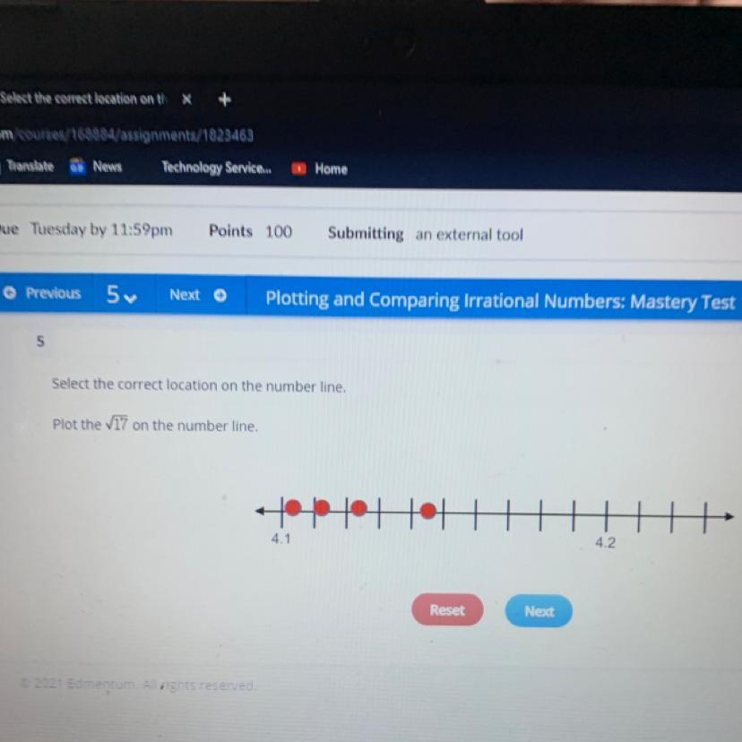 The actual square root of 17 is 4.123 and the nearest hundredth is 4.1.