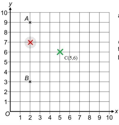 b) The coordinates of C (5,6) [Refer image]