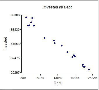 To see the relationship between the information about the debt and the investment is it best to make a scatterplot with the sample information.