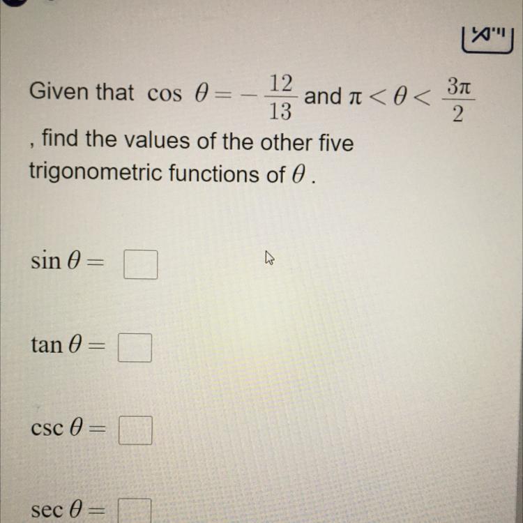 The angle theta is between pi and 3pi/2, excluding both endpoints.