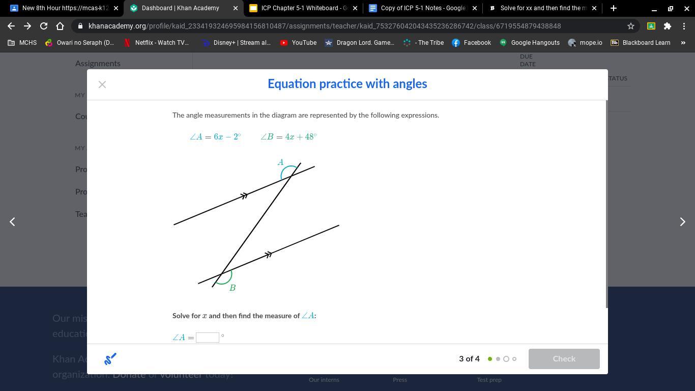 There are three outcomes possible in total if either event A happens or event B happens. This is out of six outcomes total.