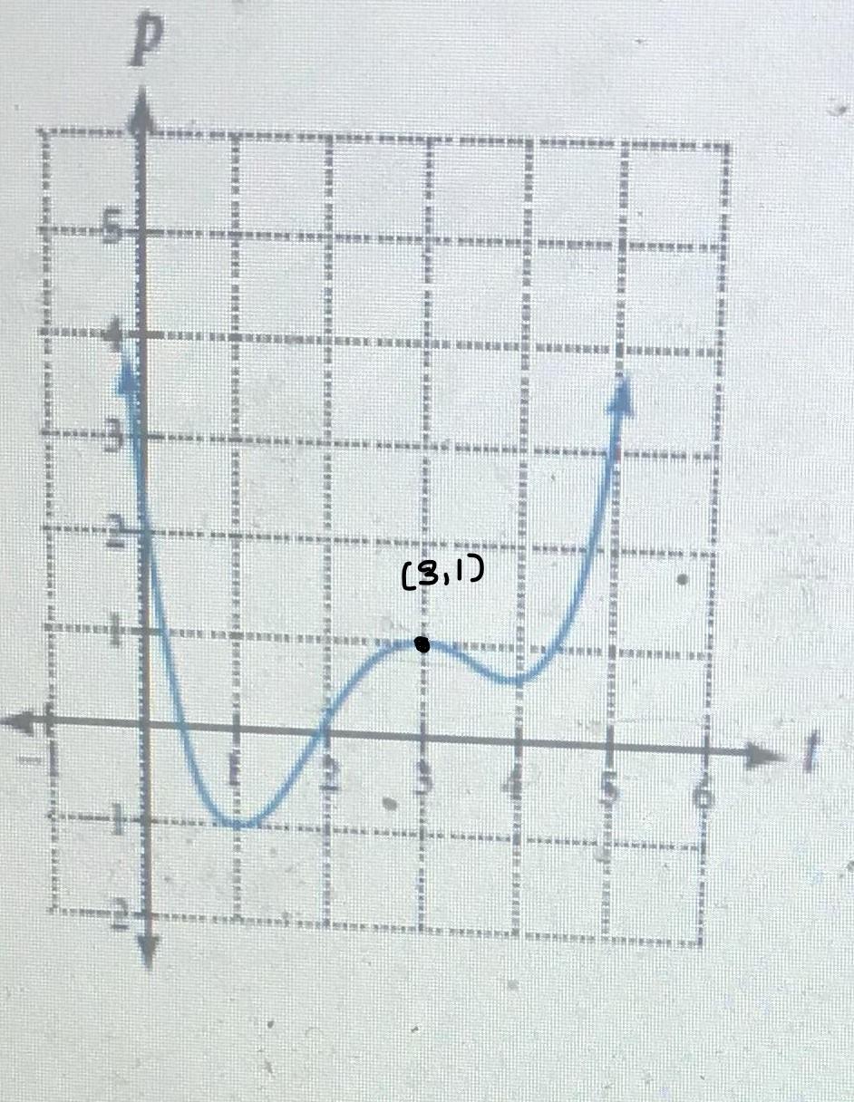• We are left with our local extrema and absolute extrema. Now remember the absolute extrema is the absolute lowest point in the whole graph, while the local extrema is the lowest point in a restricted interval. In this case our local extrema is our maximum, (3,1). But this maximum is not greater than the starting point (0, 4) so it appears, and hence their is no absolute extrema.