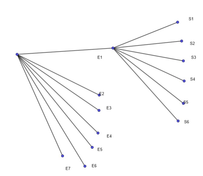 Take a look at the diagram below. There are 6 possible science teachers that the student could choose after choosing E1 which is the first English teacher. Each of the remaining 6 english teachers also allow for 6 science teachers.