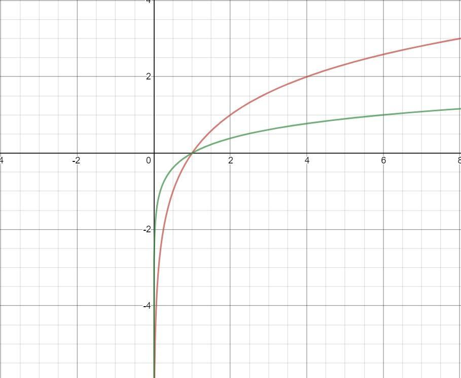 We know that the greater the base of a logaritmic function is, the faster it will grow/decay.