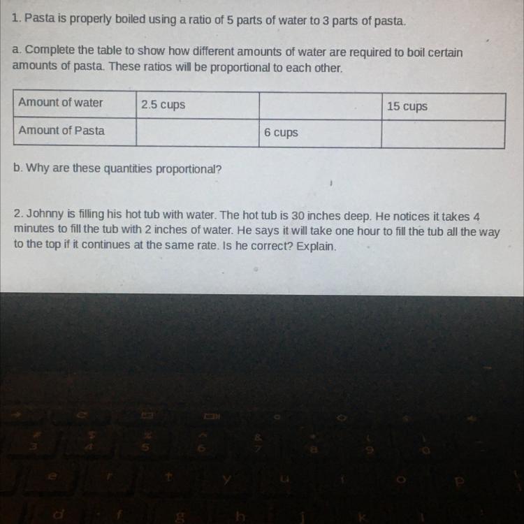 2. Johnny is correct. The rate is 4 : 2, with a unit rate of 2 : 1. If you multiply both sides by 30 (how many inches deep the hot tub is) you get a ratio of 60 : 30, meaning it would take an hour to fill up the tub.
