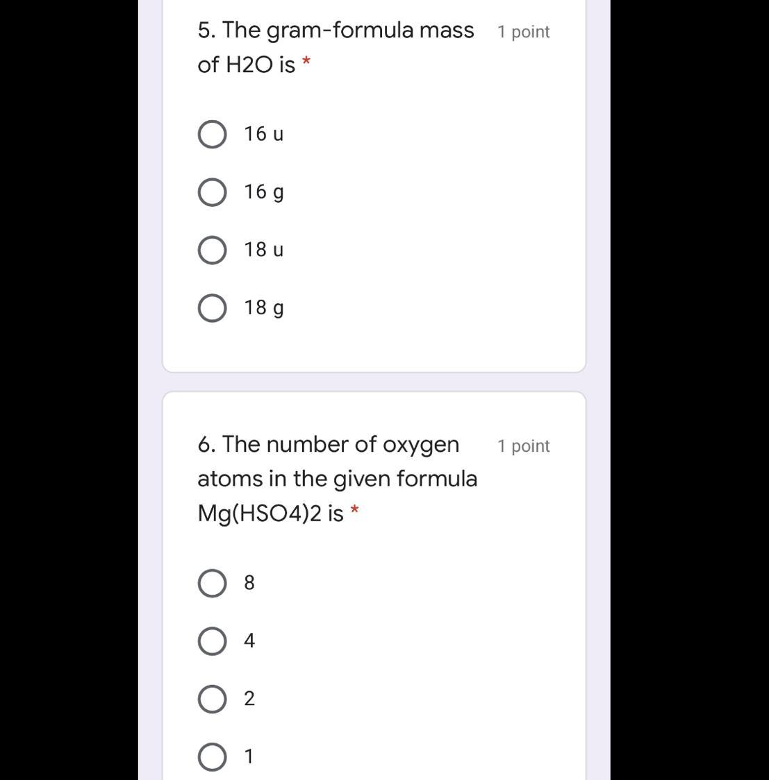 the amswer to number 5 is 18g/ mol and the answer to number 6 is 8