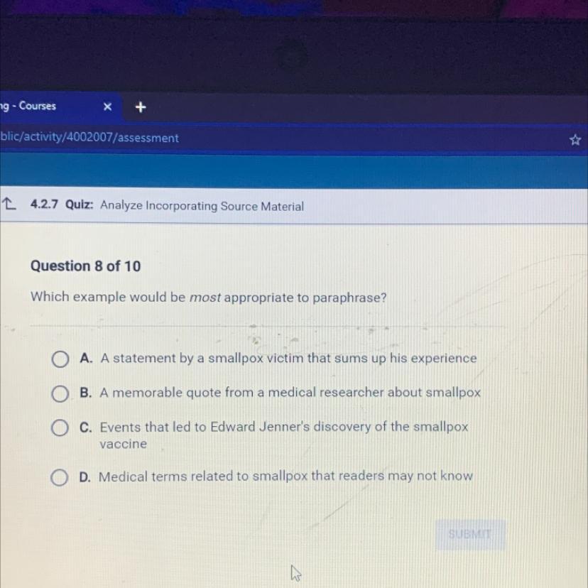 The correct answer for this question is D