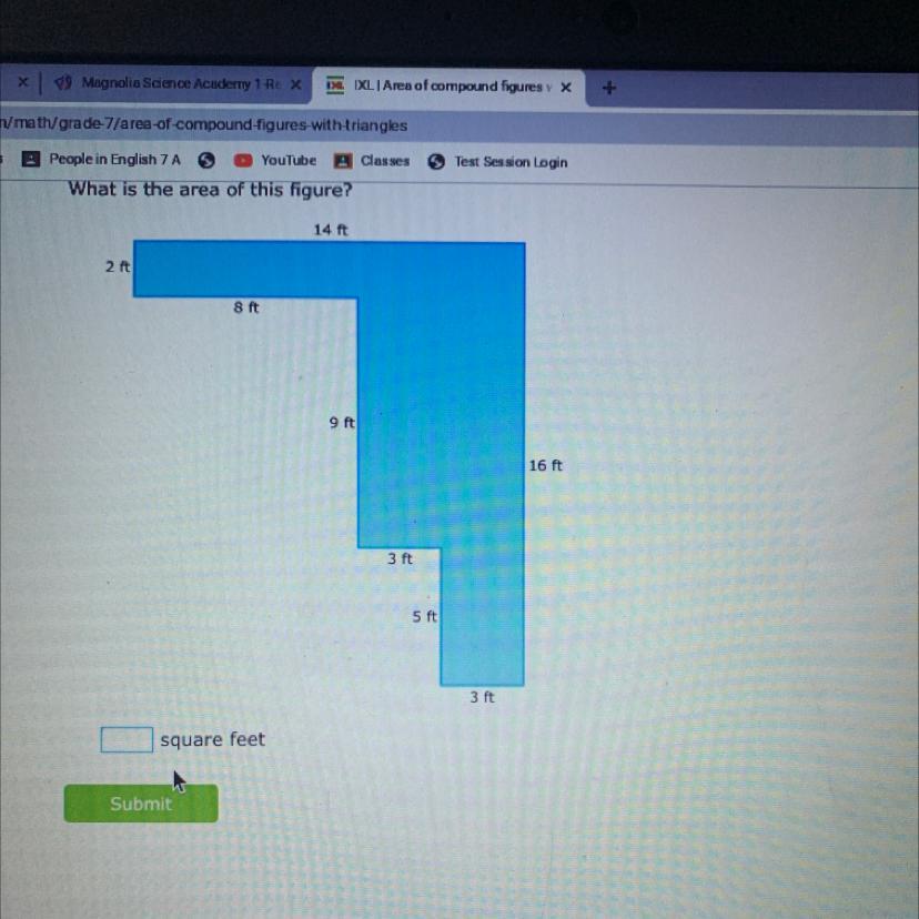The the opp side is given by (hypo)^2 = (adj)^2 + (opp)^2. Here,