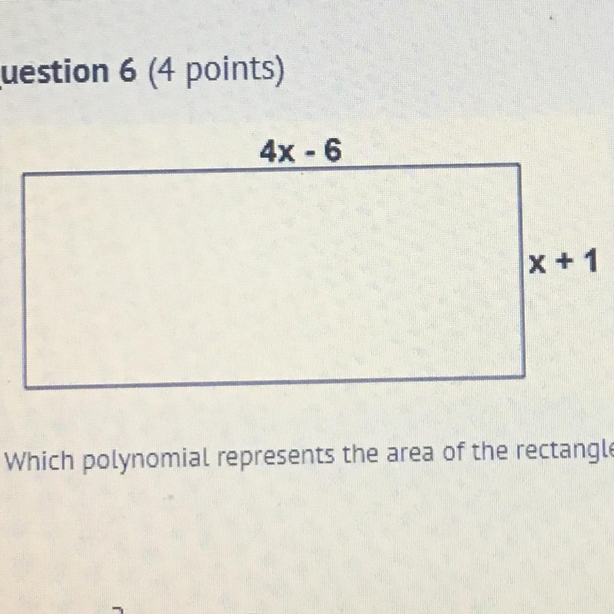 The area of the rectangle shown is expressed as 4x² - 2x - 6