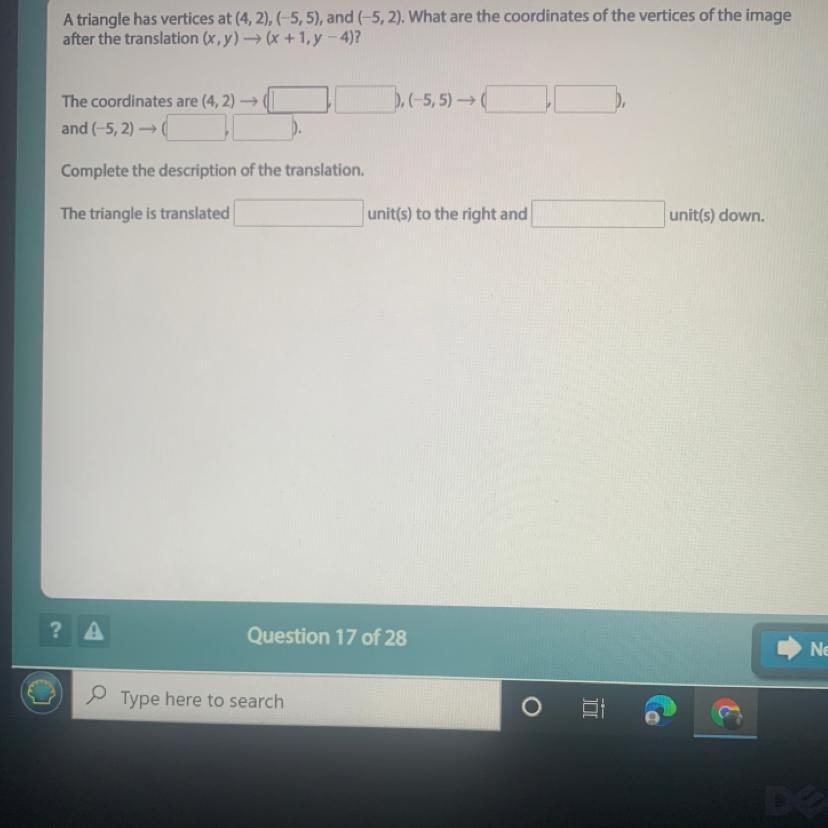 The triangle is translated 1 units to the right and 4 units down.
