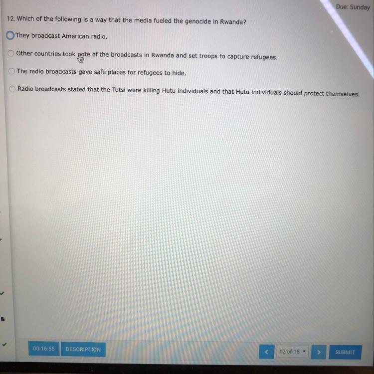 The correct answer is radio broadcasts stated that Tutsi were killing Hutu individuals and that Hutu individuals should protect themselves.