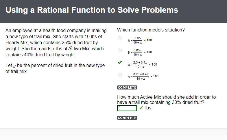 Employee adds x lb of Active Mix, which contains 40% dried fruit by weight.