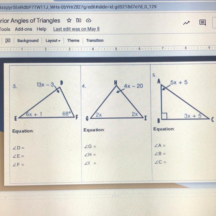 m<D = 13x - 3 = 13(6) - 3 = 75°
