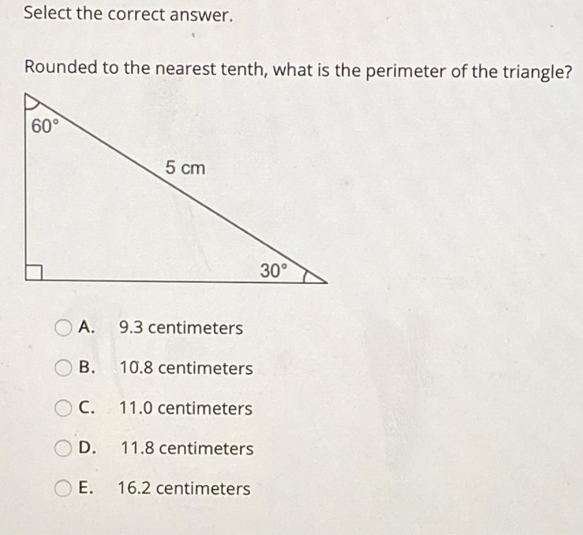 5 + 2.5 + 4.33 = 11.83 . . . . cm