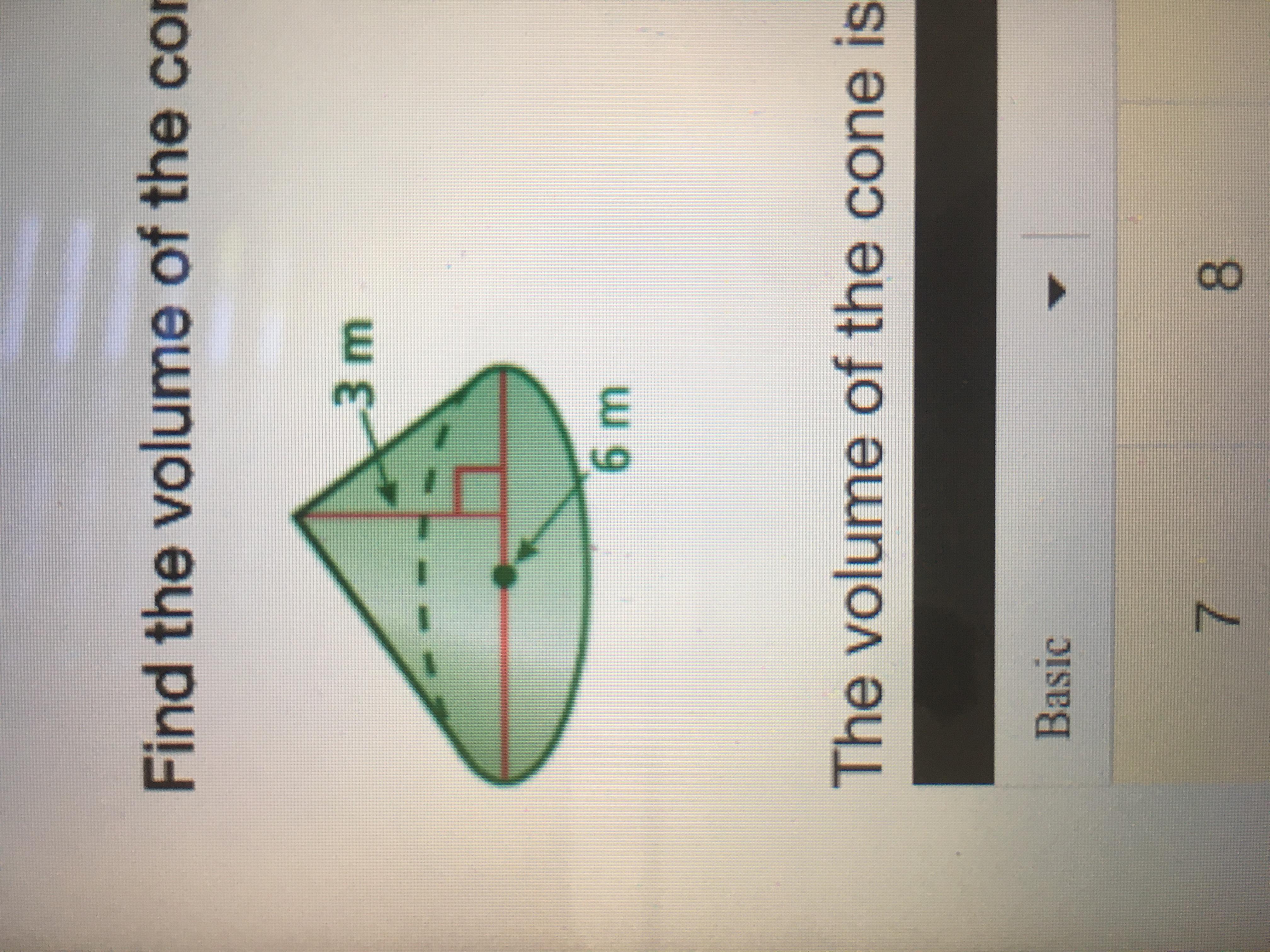 You find the volume by V=1/3hπr² , it becomes 56.55 . you round that to the nearest ten then it leads you to 56.6